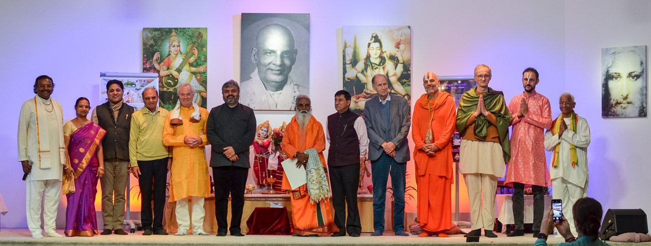 Vertreter der hinduistischen Gemeinschaft in Deutschland zum Satsang bei Yoga Vidya 2025 - Quelle: https://blog.yoga-vidya.de/hindu-forum-germany-in-bad-meinberg-wertschaetzende-worte-im-yoga-vidya-satsang/