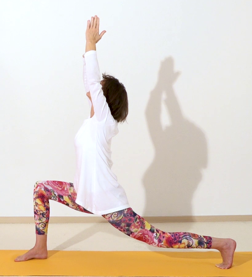 Hoher Halbmond Yoga Stellung, eine Yogastellung aus dem Yoga Vidya Asana Lexikon. Dieses Foto ist ein Screen Shot aus dem Jahr 2018/2019. Copyright Yoga Vidya e.V..
