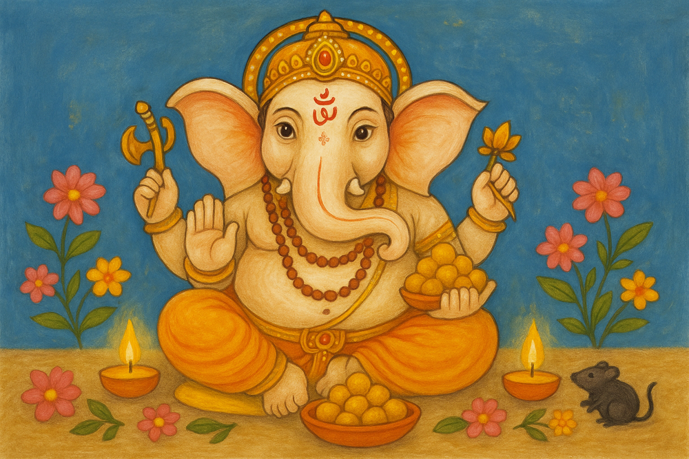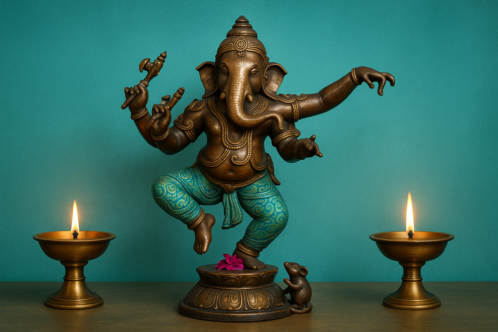 - Ganesha, der elefantenköpfige Gott, beseitigt Hindernisse auf dem spirituellen Weg und steht für Intelligenz und spirituellen Anfang.