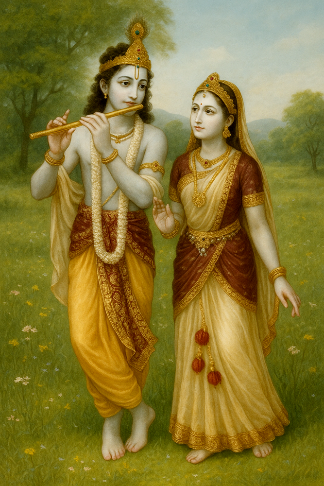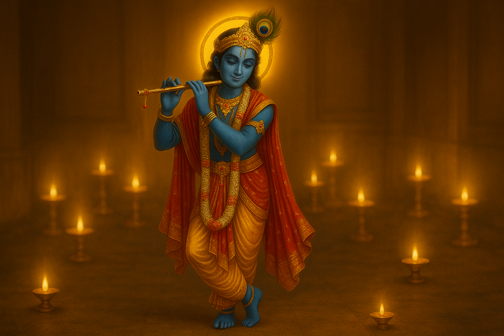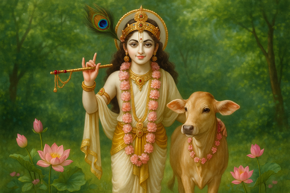 - Krishna verkörpert göttliche Liebe, Freude und Leela (kosmisches Spiel).
