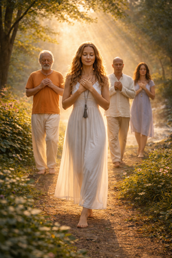 Auf spiritueller Ebene unterstützt Meditation in Bewegung die Erfahrung von Einheit und Verbundenheit. Wenn Bewegung ohne Ziel und Bewertung geschieht, kann sich ein Zustand von innerer Weite einstellen, in dem das Gefühl eines getrennten Selbst in den Hintergrund tritt. Der Körper wird nicht länger als Hindernis, sondern als Ausdruck des Bewusstseins erfahren – ein zentraler Aspekt vieler yogischer und spiritueller Wege.