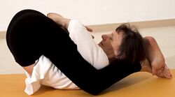 - Yoga Schlafstellung mit Händen an den Füßen - Yoga Nidrasana Variation