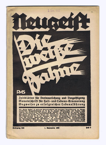 | 20:21, 21. Nov. 2013 | Die-weisse-fahne.jpg (Datei) | 52 KB | Sukadev | Die Weiße Fahne, Zeitschrift der Neugeistbewegung, erschienen im Johannes Baum Verlag | 1 | |