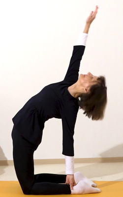 Hier ein Video mit Anleitung und Erläuterungen von und mit Sukadev Bretz zur Yogastellung Diagonales Hineingehen ins Kamel.