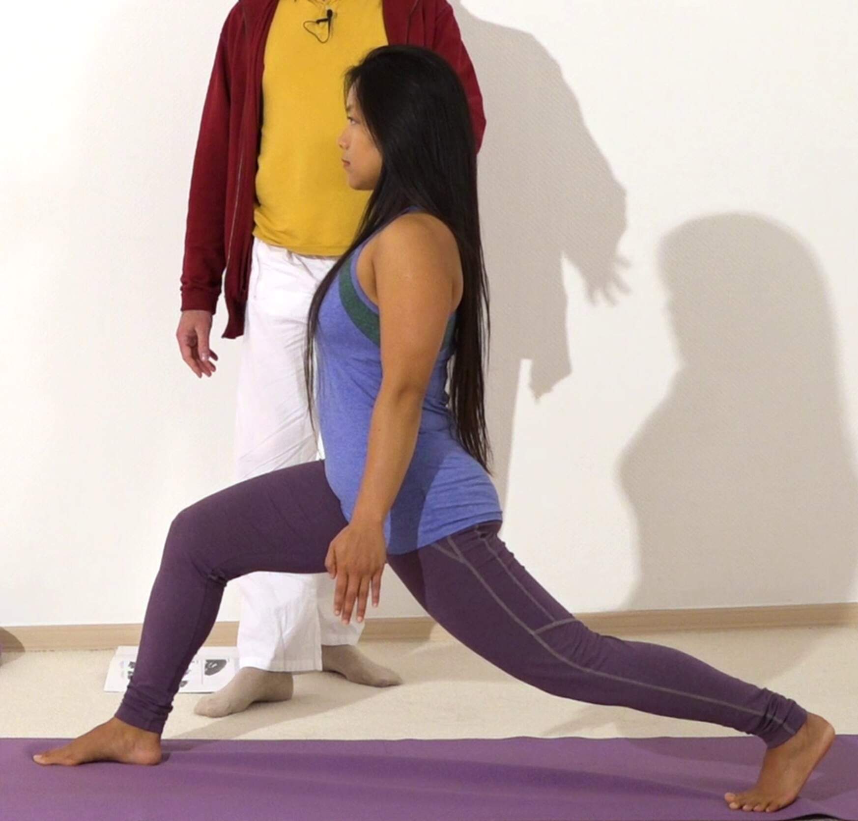 Reiter Stellung, Sanskrit Ashvasanchalasana, eine Yoga Position aus dem Yoga Vidya Asana Lexikon. Dies ist Foto aus einem Yoga Video von Yoga Vidya, größter Anbieter von Yogalehrer Ausbildungen im deutschsprachigen Raum. Willst du mehr wissen? Dann schaue nach in der Yoga Vidya App, sowie im Yoga Vidya Asana Portal, Stichwort Halbmond Anjaneyasana. Asanas, Pranayama, Tiefenentspannung bereiten auf die Meditation vor.