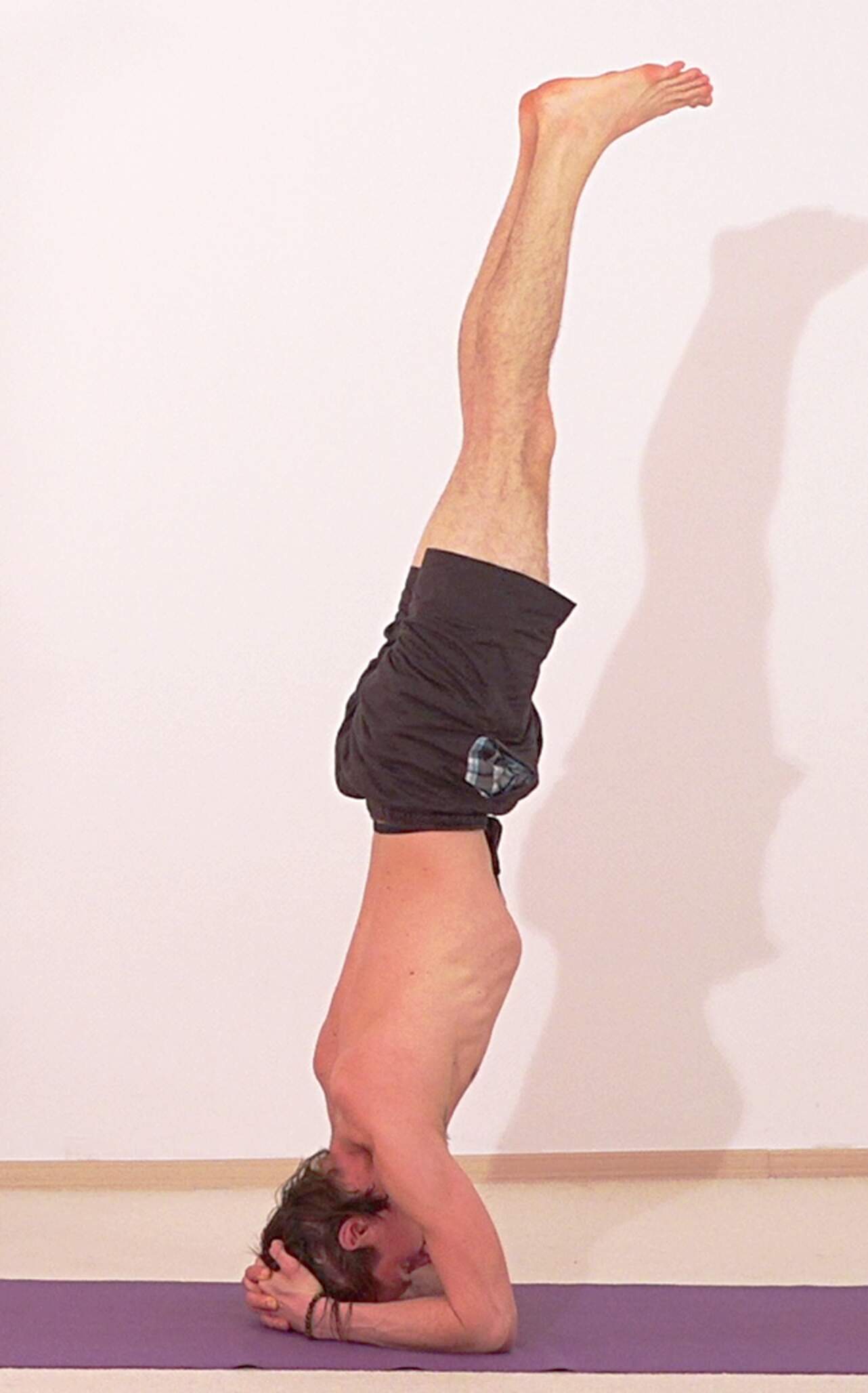 Kapalyasana, Einer der vielen Sanskrit-Namen für den Kopfstand, eine Yogastellung für Fortgeschrittene. Kapalyasana ist eine Gleichgewichtsübung. Kapalyasana, Variation der Grundstellung Shirshasana, ist ein Asana aus der Asana Liste von A-Z. Asanas, Pranayama, Tiefenentspannung bereiten auf die Meditation vor. Dieses Bild wurde auf den Yoga Vidya Seiten erstmal verwendet ab ca. 2021.