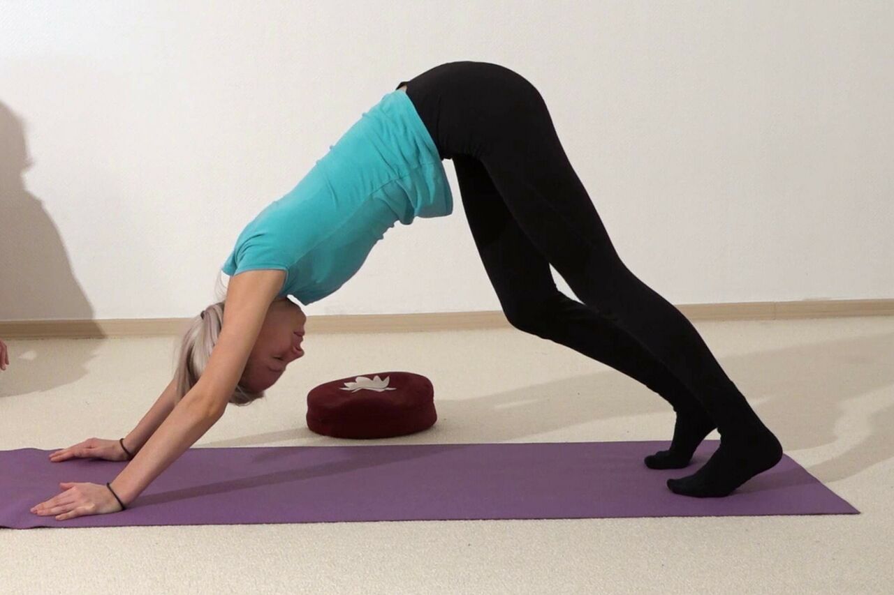 Genussvoller Hund, eine Yoga Pose aus dem Yoga Vidya Asana Lexikon. Dies ist Foto aus einem Yoga Video von Yoga Vidya, größter Anbieter von Yogalehrer Ausbildungen im deutschsprachigen Raum. Asanas, Pranayama, Tiefenentspannung bereiten auf die Meditation vor.