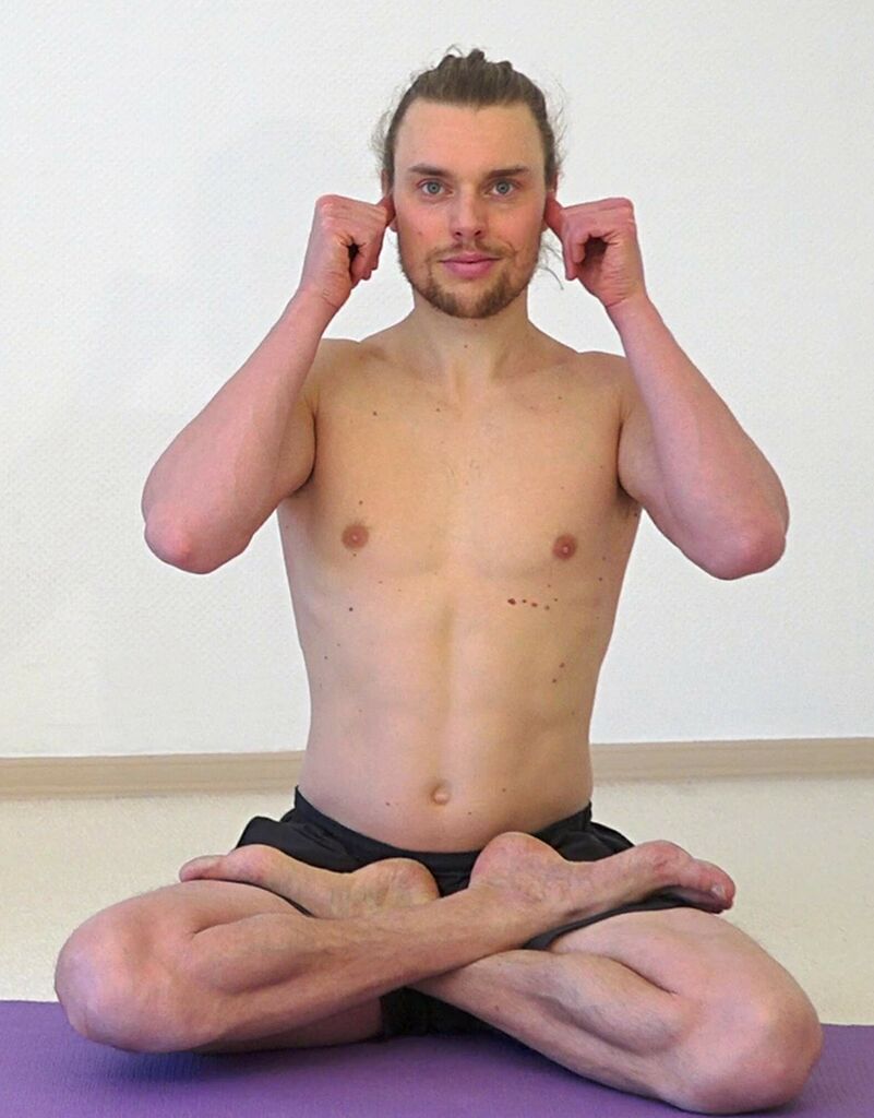Achalanatha Asana, Stellung des Meisters der Unbeweglichkeit, eine Yoga Stellung für Mittelstufe und Fortgeschrittene. Achalanatha Asana ist eine Yoga Übung mit geradem Rücken. Achalanatha Asana, Variation der Grundstellung Padmasana, ist eine Yoga Pose, über die du mehr findest im Yoga Vidya Asana Portal. Copyright Yoga Vidya. Foto aufgenommen vermutlich in den Jahren 2019-2021.