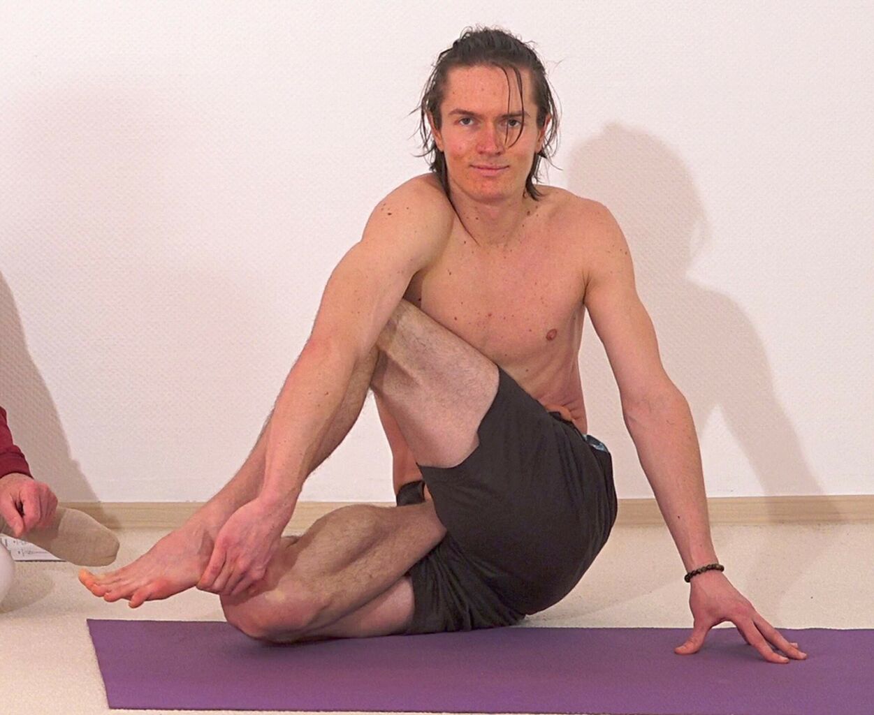 Kaneri Asana, Stellung des Meisters Kaneri, eine Yogaposition für Fortgeschrittene. Kaneri Asana ist eine Drehübung. Kaneri Asana, Variation der Grundstellung Matsyendrasana, ist eine Yoga Haltung aus der Asana Liste von A-Z. Übe regelmäßig Yoga und Meditation für Gesundheit, Vitalität und Gelassenheit. Dies ist eine Aufnahme aus Asana Video Lexikon von Yoga Vidya, größter Anbieter von Yogalehrer Ausbildungen im deutschsprachigen Raum.