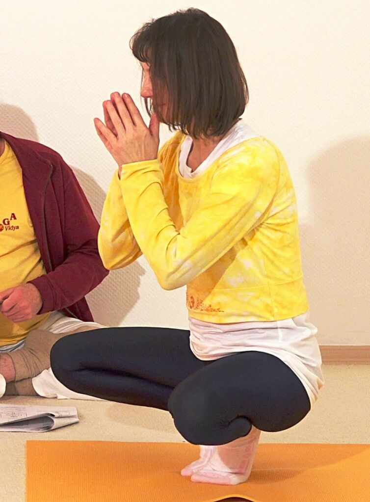 Bhisraka Asana, , eine Stellung aus dem Yoga für Fortgeschrittene. Bhisraka Asana ist eine Gleichgewichtsübung, Yoga Übung mit geradem Rücken. Bhisraka Asana, Variation der Grundstellung Bhisrarika Asana, ist eine Yogastellung, zu der du viele Tipps bekommst im Asana Lexikon von Yoga Vidya. Regelmäßiges Üben von Yoga schenkt dir Entspannung, Gesundheit und Vitalität. Dieses Foto wurde aufgenommen in den ersten Jahren von Yoga Vidya, Europas großes Netzwerk von Yogalehrern und Yogalehrerinnen.