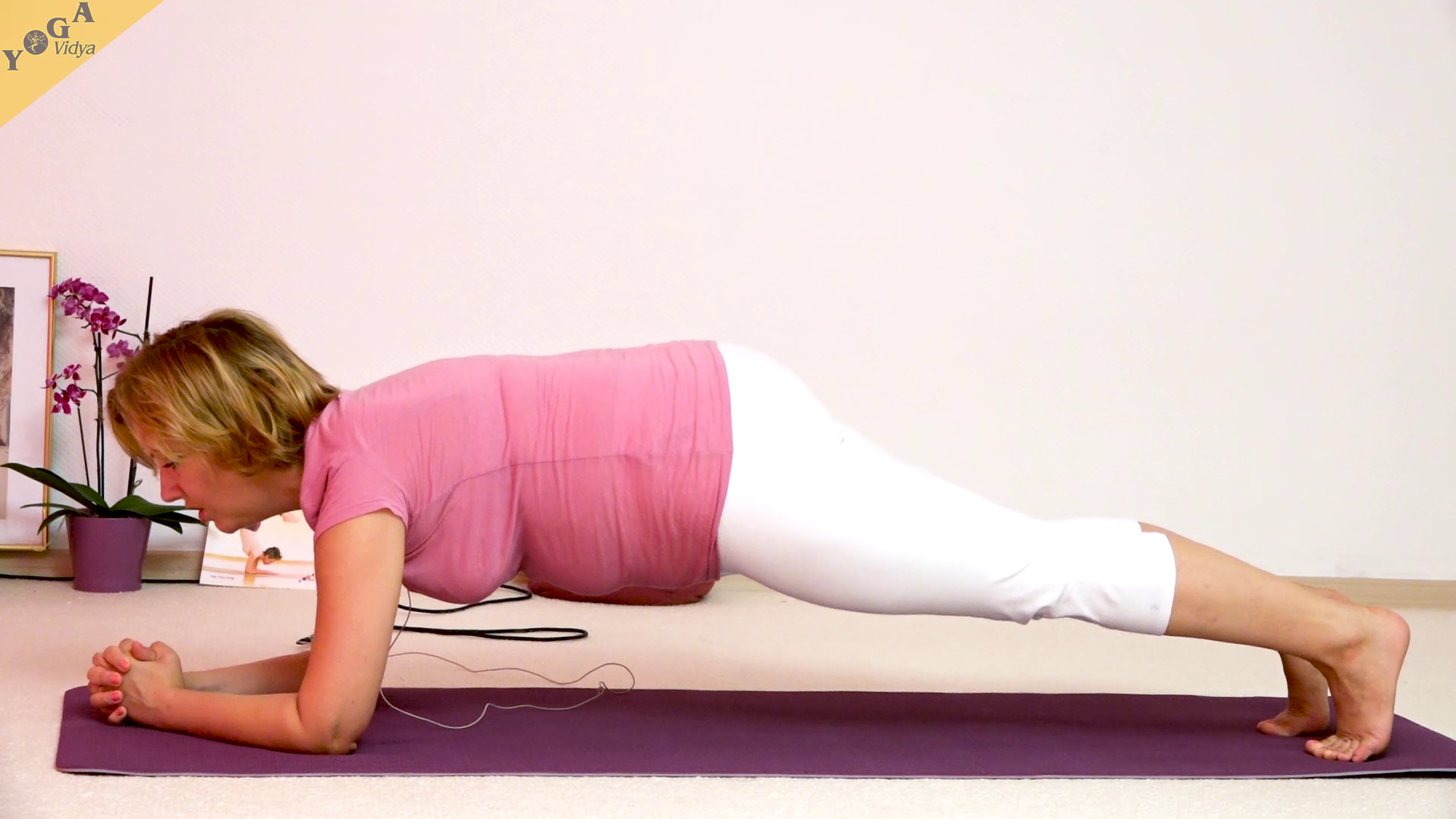 Ellbogen-Stütz, eine Stellung, zu der du viele Tipps bekommst im Asana Lexikon von Yoga Vidya. Dieses Foto ist ein Screen Shot aus dem Jahr 2018/2019. Praktische Anleitungen mit Wirkungen und Konzentrationshilfen gibt es in der Yoga Vidya App, sowie im Yoga Vidya Asana Portal, Stichwort [Stütz Chaturangadandasana]. Regelmäßiges Üben von Yoga schenkt dir Entspannung, Gesundheit und Vitalität.