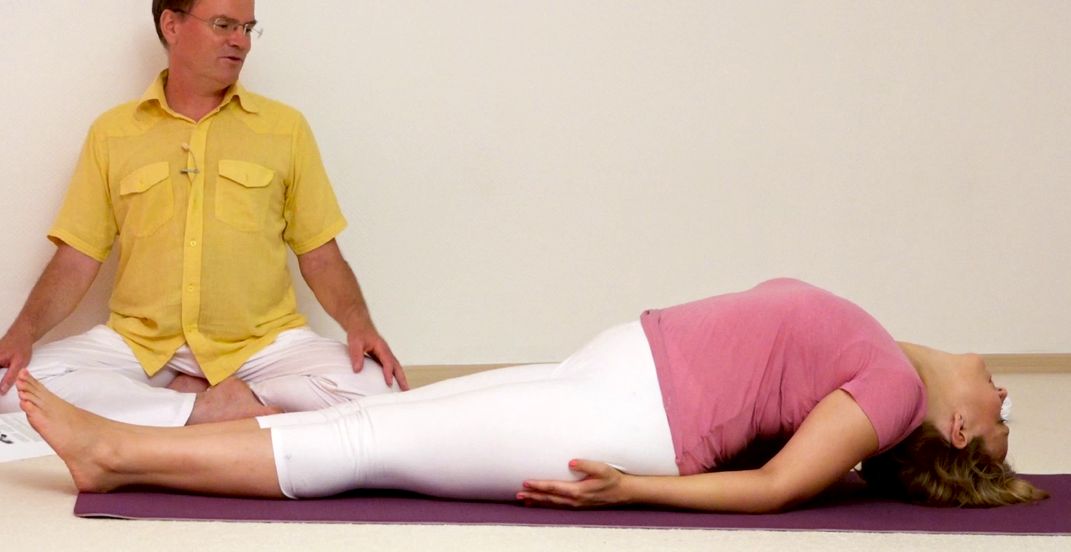 Fisch mit Handfläche nach oben, eine Yoga Pose aus der Asana Liste von A-Z. Dieses Foto wurde aufgenommen aus einem Yoga Video von Yoga Vidya, Europas großes Netzwerk von Yogalehrern und Yogalehrerinnen. Viele Anregungen und Übungsanleitung zu diesem Yoga Asana findest du in der Yoga Vidya App, sowie im Yoga Vidya Asana Portal, Stichwort [Fisch Matsyasana]. Übe regelmäßig Yoga und Meditation für Gesundheit, Vitalität und Gelassenheit.