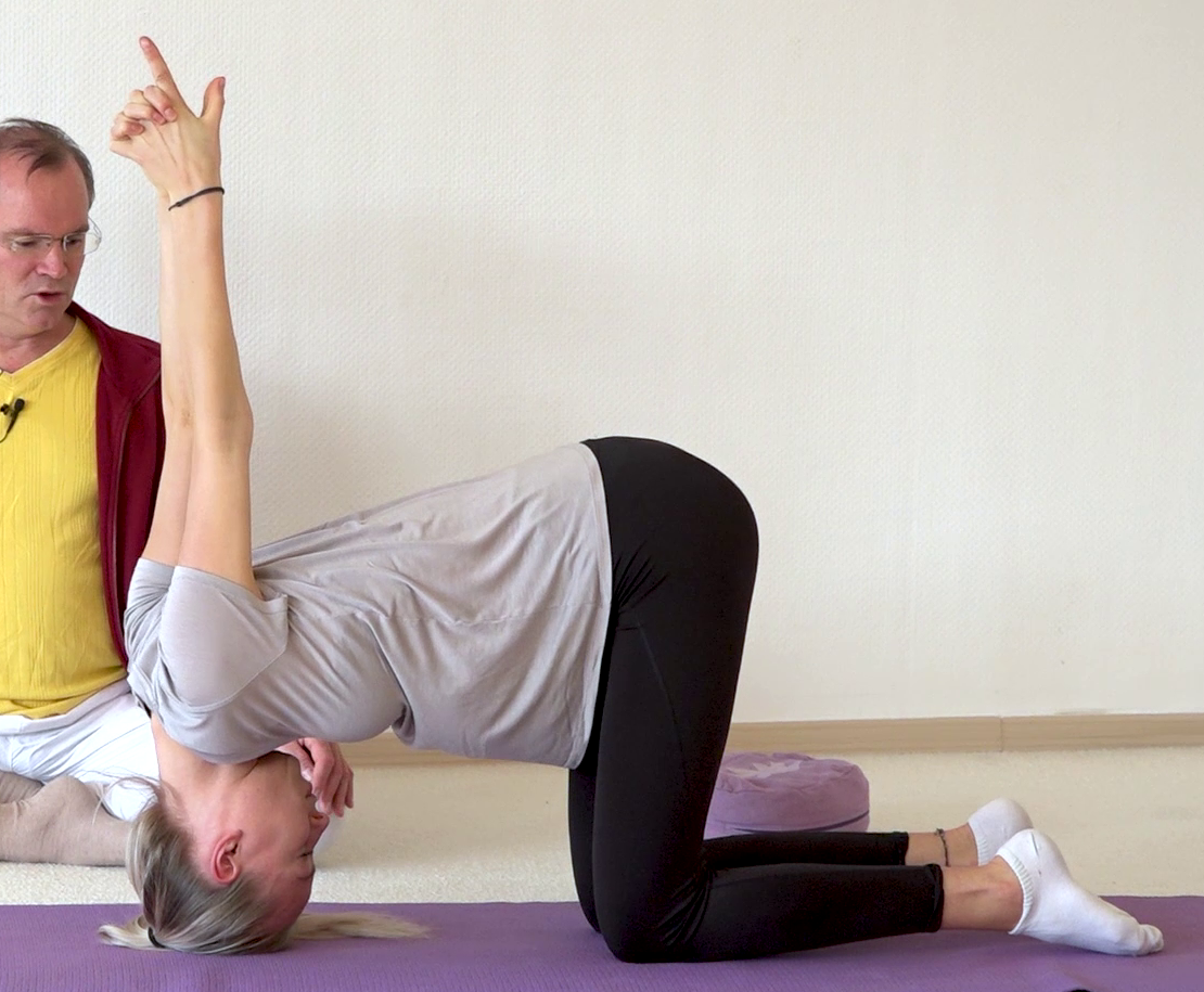 Kaninchen - Pose, Kaninchen-Stellung, Sanskrit Shashankasana, ein Yoga Asana, zu der du viele Tipps bekommst im Asana Lexikon von Yoga Vidya. Dieses Asana Foto wurde aufgenommen im Svadhishthana Raum von Yoga Vidya Bad Meinberg. Übe regelmäßig Yoga und Meditation für Gesundheit, Vitalität und Gelassenheit.