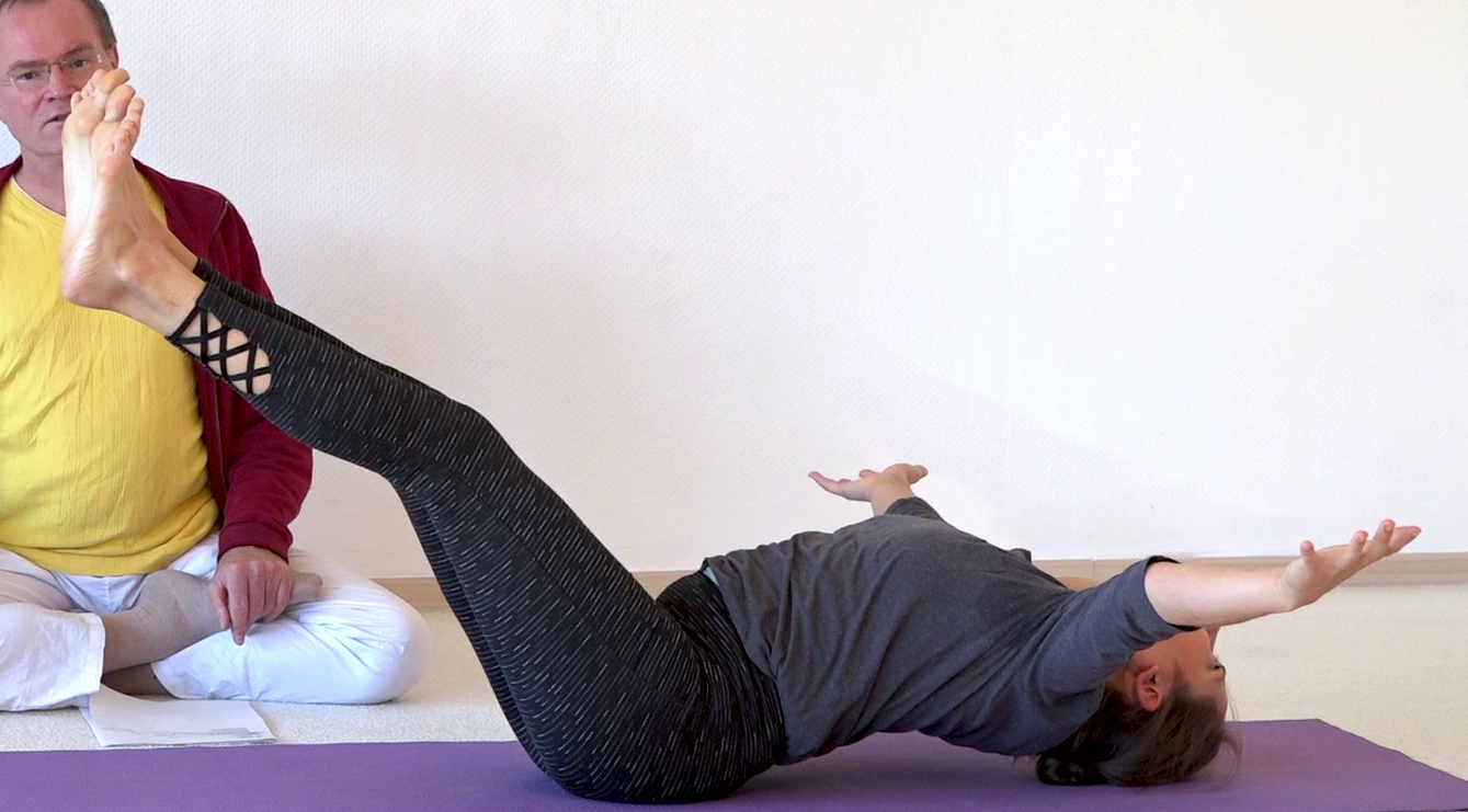 Kopf-Gesäß-Stand (Fisch mit erhobenen Beinen), eine Yoga Position aus dem Yoga Vidya Asana Lexikon. Dieses Asana Foto stammt aus einem Yoga Video von Yoga Vidya, Teil des Yoga Vidya Asana Lexikons. Hilfen und Tipps zu dieser Yoga Haltung bekommst du in der Yoga Vidya App, sowie im großen Yoga Vidya Asana Portal, Stichwort [Fisch Matsyasana]. Asanas, Pranayama, Tiefenentspannung bereiten auf die Meditation vor.