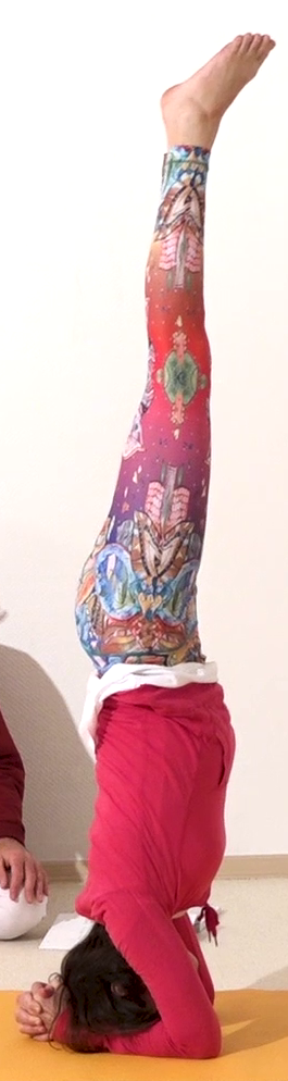 Kopfstand Armvariations-Zyklus, eine Yogastellung aus der Asana Liste von A-Z. Dieses Foto wurde aufgenommen aus einem Yoga Video von Yoga Vidya, Europas großes Netzwerk von Yogalehrern und Yogalehrerinnen. Praktische Anleitung zu dieser Yoga Übung bekommst du auf dem Yoga Vidya Asana Portal, Stichwort [Kopfstand Shirshasana]. Regelmäßiges Üben von Yoga schenkt dir Entspannung, Gesundheit und Vitalität.