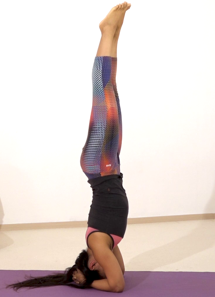 Kopfstand mit Agnisara, eine Yoga Pose, zu der du viele Tipps bekommst im Asana Lexikon von Yoga Vidya. Dieses Foto ist ein Screen Shot aus dem Jahr 2018/2019. Viele Anregungen und Anleitung zu dieser Yoga Position findest du in der Yoga Vidya App, sowie im Yoga Vidya Asana Portal, Stichwort [Kopfstand Shirshasana]. Copyright Yoga Vidya.