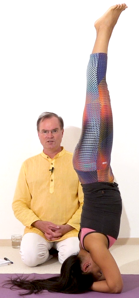 Kopfstand mit Shambhavi Mudra, eine Stellung aus der Asana Liste von A-Z. Dieses Asana Foto stammt aus einem Yoga Video von Yoga Vidya, Teil des Yoga Vidya Asana Lexikons. Hilfen und Tipps zu dieser Yoga Haltung bekommst du in der Yoga Vidya App, sowie im großen Yoga Vidya Asana Portal, Stichwort [Kopfstand Shirshasana]. Yoga Übungen machen Spaß, sind gesund und helfen der spirituellen Entwicklung.