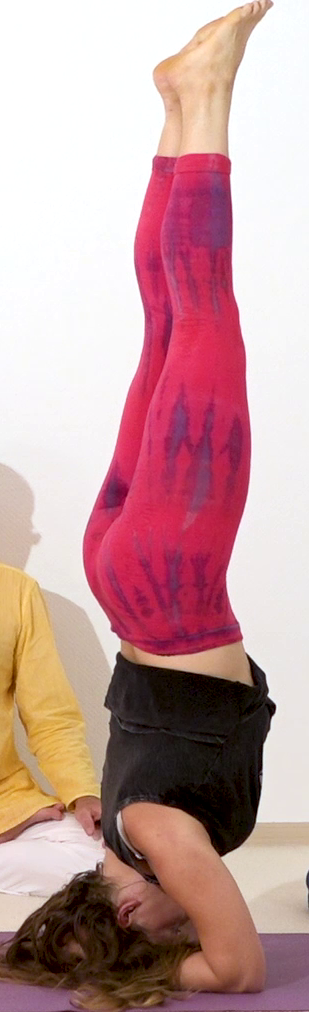 Kopfstand mit vorderer Nabho Mudra, ein Asana, zu der du viele Tipps bekommst im Asana Lexikon von Yoga Vidya. Dieses Asana Foto stammt aus einem Yoga Video von Yoga Vidya, Teil des Yoga Vidya Asana Lexikons. Praktische Anleitungen mit Wirkungen und Konzentrationshilfen gibt es in der Yoga Vidya App, sowie im Yoga Vidya Asana Portal, Stichwort [Kopfstand Shirshasana]. Übe regelmäßig Yoga und Meditation für Gesundheit, Vitalität und Gelassenheit.