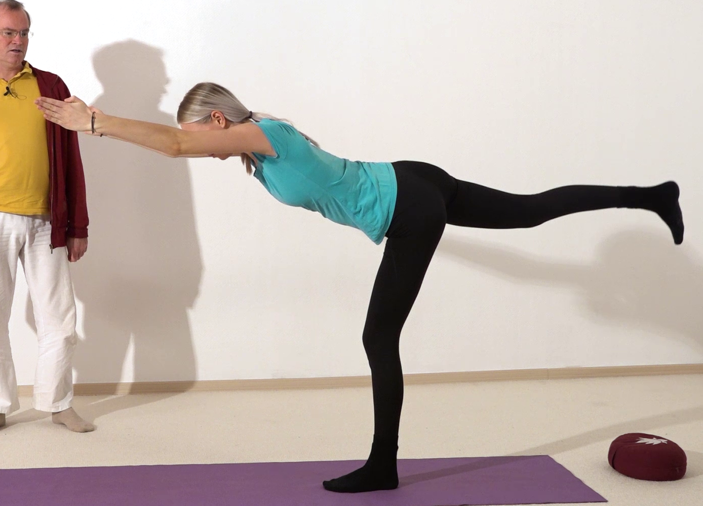 Krieger III, eine Yogastellung aus dem Yoga Vidya Asana Portal. Dieses Asana Foto stammt aus einem Yoga Video von Yoga Vidya, Teil des Yoga Vidya Asana Lexikons. Mehr Infos und Anleitung zu dieser Yoga Stellung findest du in der Yoga Vidya App, sowie im großen Yoga Vidya Asana Portal, Stichwort [Held Virabhadrasana]. Regelmäßiges Üben von Yoga schenkt dir Entspannung, Gesundheit und Vitalität.