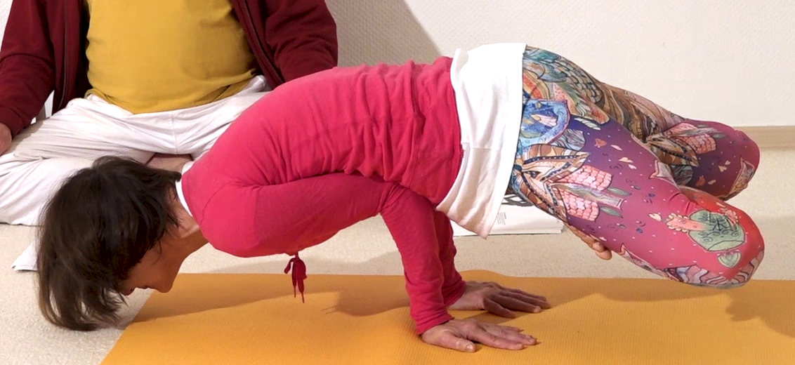 Lotospfau, eine Yoga Pose aus der Asana Liste von A-Z. Dieses Foto stammt aus dem Jahr 2018/2019, wurde aufgenommen bei Yoga Vidya, Europas großes Netzwerk von Yogalehrern und Yogalehrerinnen. Yoga Übungen machen Spaß, sind gesund und helfen der spirituellen Entwicklung.