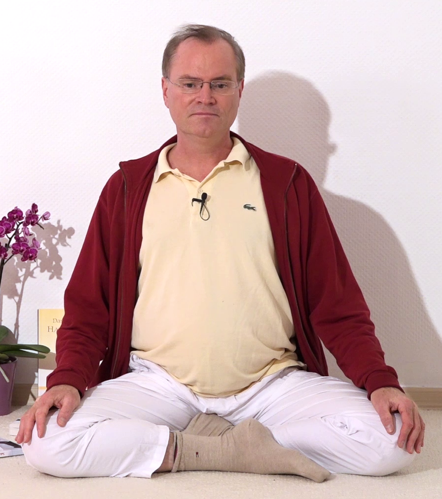 Meditationshaltungen, eine Yoga Stellung aus der Asana Liste von A-Z. Dieses Asana Foto stammt aus einem Yoga Video von Yoga Vidya, Teil des Yoga Vidya Asana Lexikons. Asanas, Pranayama, Tiefenentspannung bereiten auf die Meditation vor.